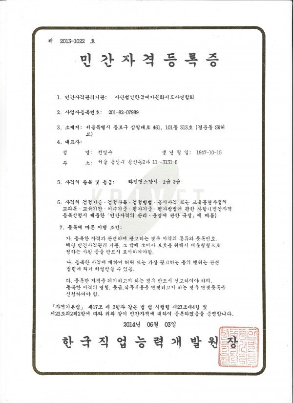 리듬댄스지도자 1급 ,2급 지도자 수료식 공지