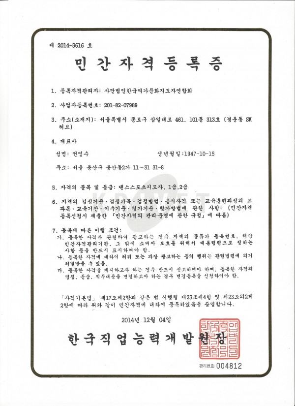 민간자격등록번호
