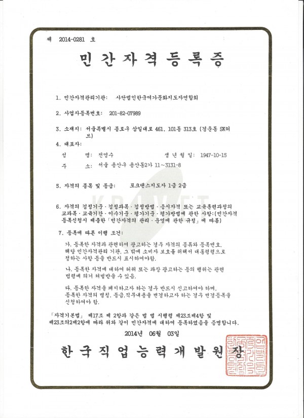 민간자격등록번호