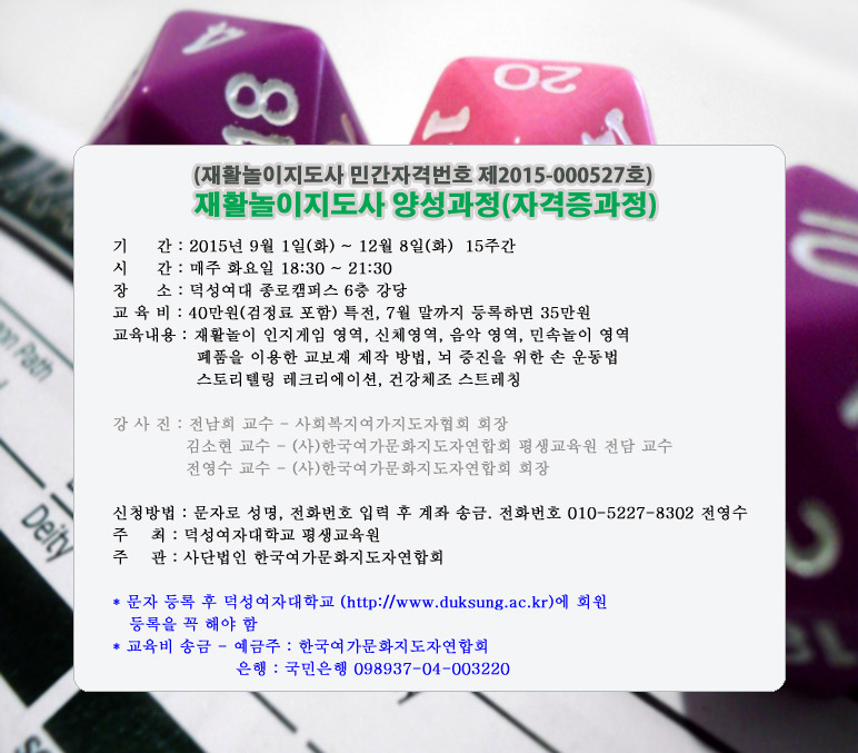 재활놀이지도사 양성과정(자격증 과정) 안내