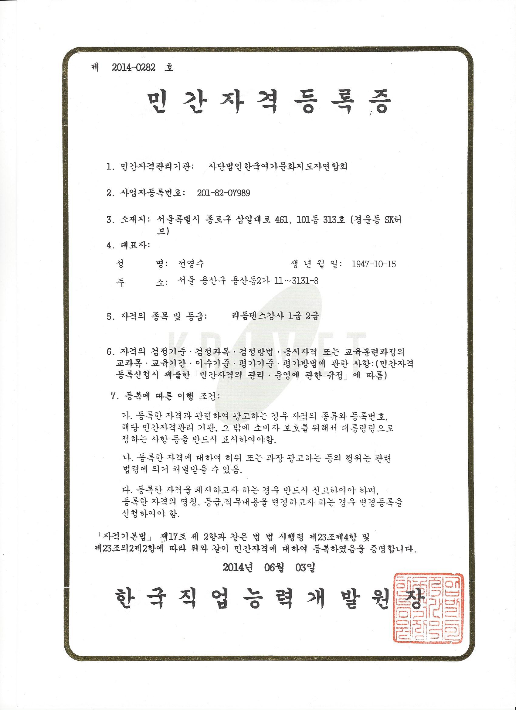 리듬댄스지도자 1급 ,2급 지도자 수료식 공지